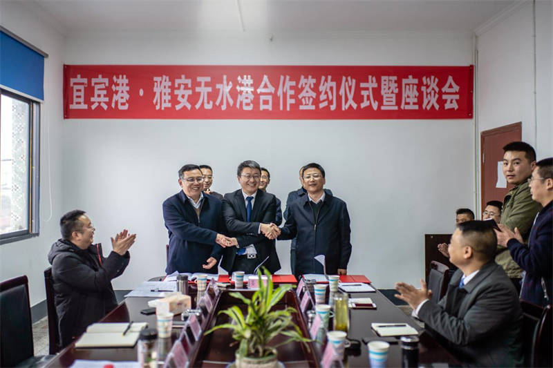 在簽約儀式上,雅安交建集團、四川宜賓港集團、中鐵聯(lián)集成都分公司共同簽署三方戰(zhàn)略合作協(xié)議,三方就“公、水、鐵”多式聯(lián)運以及倉儲運輸、甩掛運輸、集裝箱運輸、城市配送、零擔(dān)運輸?shù)榷喾N業(yè)務(wù)開展深度合作。四川宜賓港集團還分別和雅化實業(yè)集團、寶興漢白玉石材協(xié)會、蘆山縣紡織協(xié)會等企業(yè)、協(xié)會進行了戰(zhàn)略合作簽約。通過借助宜賓港·雅安無水港幫助本地企業(yè)打通外向通道,降低物流運輸成本,改善物流運輸體系。