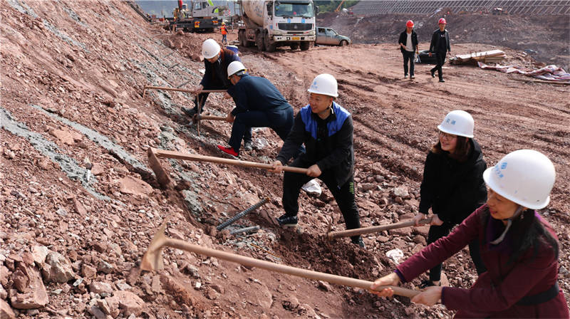 在活動(dòng)現(xiàn)場(chǎng),工程部部長(zhǎng)劉太亮給大家介紹了雨名快速通道項(xiàng)目建設(shè)情況,高邊坡支護(hù)班組相關(guān)負(fù)責(zé)人現(xiàn)場(chǎng)指導(dǎo)高邊坡支護(hù)防護(hù)工作。全體黨員、入黨積極分子和公司其他員工在工程管理人員指導(dǎo)下,揮鎬舞鋤,積極參與勞動(dòng)體驗(yàn)。