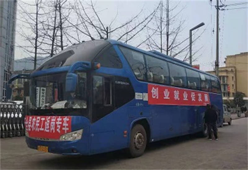2月22日上午,天全縣25名農(nóng)民工人乘坐蜀通旅游分公司首趟跨省專車返崗復工,目的地為安徽省黃山市祁門縣石川村新莊橫洞工地,全程1764公里。