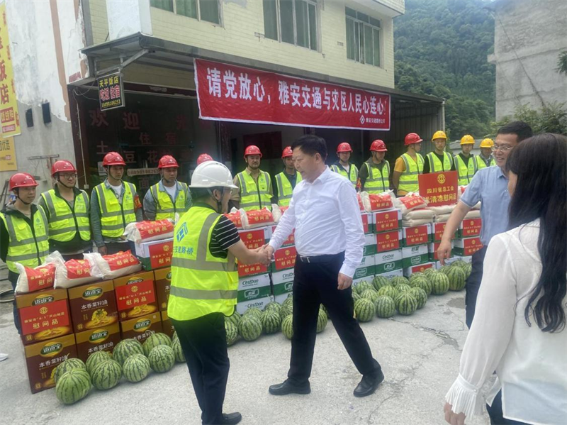 6月8日,省總工會黨組書記、副主席宋開慧赴寶興縣看望慰問雅安交建集團“6·1”地震應急搶險一線人員,并開展“送清涼”活動。雅安市委常委、市總工會主席李蓉,寶興縣委常委、縣總工會主席姚偉東陪同慰問。