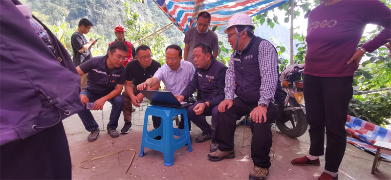 和坪村兩組400余名群眾,遍布于縣道X073兩側(cè)。為全覆蓋掌握該村道路分布、垮塌點(diǎn)位和房屋分布情況,交建集團(tuán)發(fā)揮技術(shù)優(yōu)勢,集團(tuán)黨委書記、董事長漆家華一線督導(dǎo)、多方協(xié)調(diào),組織5名相關(guān)專業(yè)技術(shù)人員,累計(jì)徒步跋涉20余小時,從6個點(diǎn)位實(shí)施無人機(jī)多角度航拍,累計(jì)拍攝照片1300余張,全覆蓋制作360°實(shí)景圖。并結(jié)合走訪入戶情況,對全村137處村民房屋進(jìn)行精準(zhǔn)定位,繪制具體房屋布置圖,為市縣包保工作組精準(zhǔn)開展工作提供有力的技術(shù)支撐。