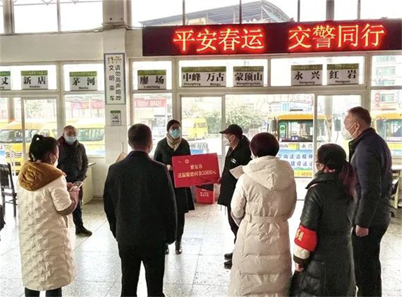 趙雅玲一行深入名山汽車客運(yùn)站,看望慰問四川蜀通運(yùn)業(yè)有限責(zé)任公司名山分公司春運(yùn)工作人員,為一線職工送上新春祝福,殷切關(guān)心、仔細(xì)詢問企業(yè)生產(chǎn)和職工工作和生活情況。