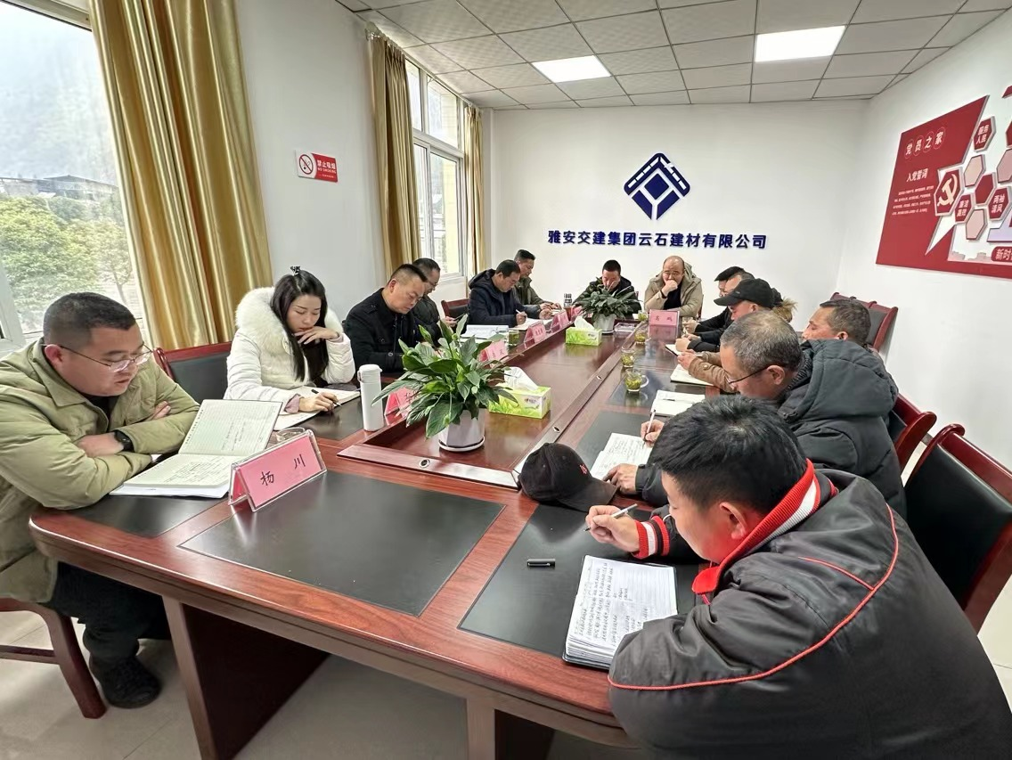 12月27日,交建集團建材貿(mào)易公司組織所屬運通、丹石、云石、興寶公司班子成員和生產(chǎn)協(xié)作單位召開“謀經(jīng)營、保安全、促發(fā)展”座談會,就砂石企業(yè)生產(chǎn)銷售、產(chǎn)業(yè)協(xié)同、安全環(huán)保工作以及節(jié)日期間廉潔風險防控工作廣泛交流意見。