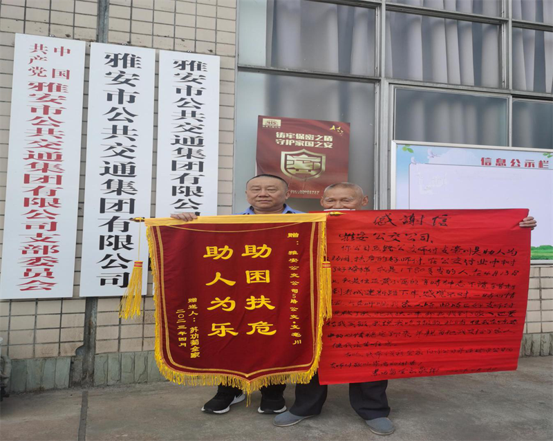 近日,雅安市公共交通集團(tuán)有限公司5路公交車駕駛員支亳川,在行駛過(guò)程中熱心幫助一老人成功尋找到家人,給文明雨城增添了暖心的一幕。4月17日,老人和家人帶著親手寫(xiě)的感謝信和錦旗,來(lái)到公交集團(tuán)當(dāng)面感謝公交集團(tuán)和5路駕駛員支師傅熱心助人的善舉。