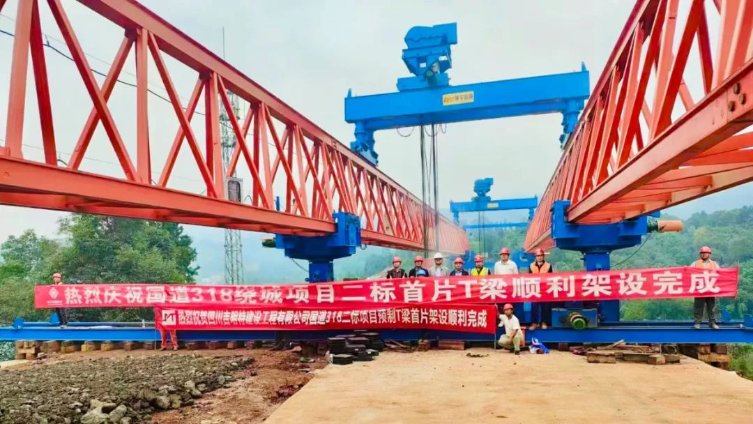 近日,由雅安交通建設(shè)(集團(tuán))有限責(zé)任公司下屬四川康藏路橋有限責(zé)任公司實(shí)施的國(guó)道318線名山區(qū)黑竹(成都界)至雨城區(qū)多營(yíng)段改建工程首片長(zhǎng)40余米、重120噸的預(yù)制T梁被精準(zhǔn)吊裝安放到名山區(qū)二道河大橋0-1號(hào)橋墩上,標(biāo)志著該項(xiàng)目進(jìn)入橋梁上部結(jié)構(gòu)施工階段。