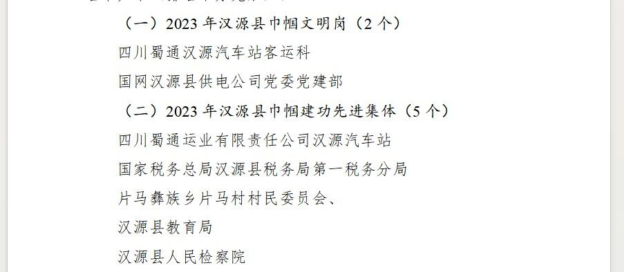 在“三八”國(guó)際婦女節(jié)來(lái)臨之際,雅安交建集團(tuán)蜀通漢源汽車站被漢源縣婦聯(lián)評(píng)為“2023年漢源縣巾幗建工先進(jìn)集體”、“2023年漢源縣巾幗文明崗”。
