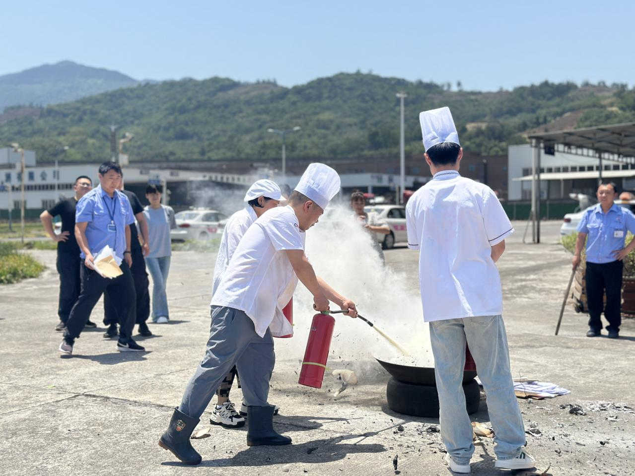 正式演練前,公司副總經(jīng)理鄭循禮講述了“防災(zāi)減災(zāi)日”的由來,傳授了防震避難、防火防電、防洪防汛等方面的基本知識,專業(yè)人員對消防器材使用方式進(jìn)行了教學(xué),并組織廚師、安全部重點人員模擬起火現(xiàn)場,“零距離”體驗消防護(hù)具。隨后,開展地震應(yīng)急演練,在模擬地震的預(yù)警信號發(fā)出后,全體職工運用學(xué)習(xí)的避震知識,雙手抱頭、蜷縮身體、降低重心,快速有序撤離室內(nèi)到達(dá)戶外安全區(qū)域。