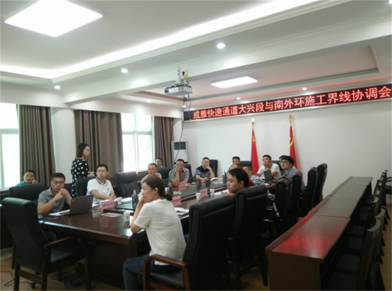 2018年6月20下午,市住建局、市交通局組織成雅快速通道新建項(xiàng)目和南外環(huán)建設(shè)項(xiàng)目兩個(gè)項(xiàng)目業(yè)主單位 、設(shè)計(jì)單位、監(jiān)理單位、施工單位在交建集團(tuán)召開協(xié)調(diào)會,協(xié)商解決成雅快速通道大興段與南外環(huán)設(shè)計(jì)方案對接問題。