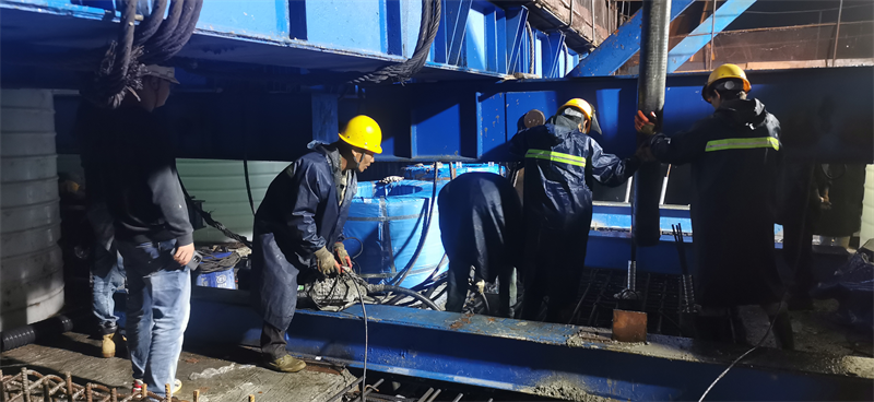 由于中跨合攏段施工要求高,我司于9月10日就開始右幅中跨合攏段鋼筋制作工作。工地現(xiàn)場實(shí)測最高溫47攝氏度,而混凝土須低于30攝氏度澆筑才能確保質(zhì)量。為此,項(xiàng)目部將一線施工作業(yè)時間進(jìn)行了調(diào)整,避開了10:00至16:30的高溫時段,選在溫度偏低的夜間進(jìn)行施工。項(xiàng)目部人員全力以赴與時間賽跑,與天氣斗爭,于9月17日23點(diǎn)開始進(jìn)行混凝土澆筑,經(jīng)過徹夜奮戰(zhàn)于凌晨2點(diǎn)30分完成合攏段全部施工,有效保證了合攏段施工質(zhì)量。
