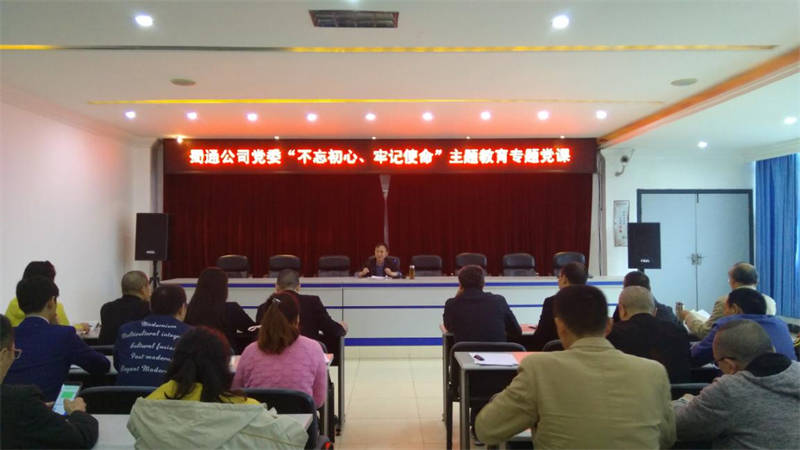 10月24日,公司黨委“不忘初心、牢記使命”主題教育專題黨課在蜀通公司機關大會議室舉行,公司黨委書記吳誠向蜀通公司、公交公司黨員講專題黨課。公司黨支部書記、和黨員代表共35人參加。