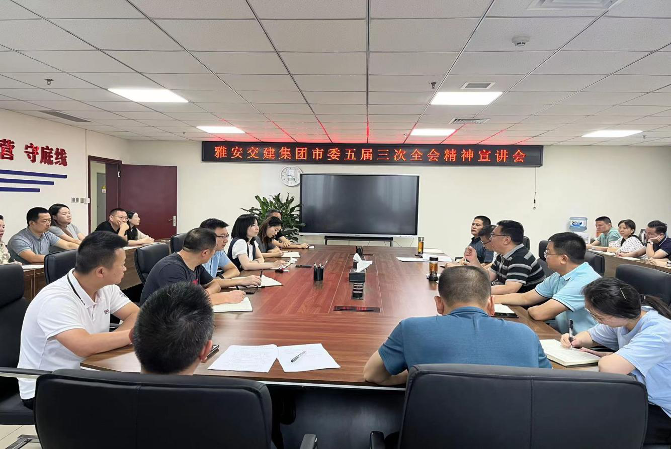 7月13日,雅安交建集團(tuán)黨委召開專題宣講會,傳達(dá)學(xué)習(xí)市委五屆三次全會精神,雅安交建集團(tuán)黨委書記、董事長漆家華作主題宣講,集團(tuán)公司領(lǐng)導(dǎo)班子成員、下屬各黨組織書記、機(jī)關(guān)全體黨員參加。