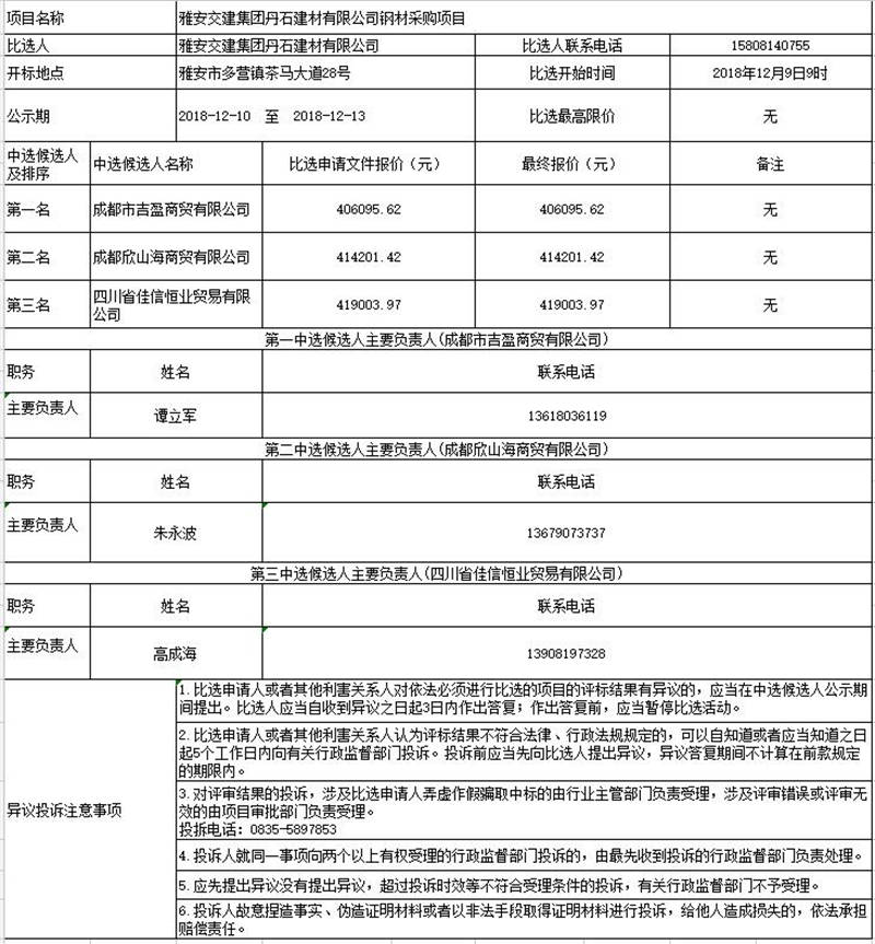 雅安交建集團丹石建材有限公司鋼材采購項目比選公示