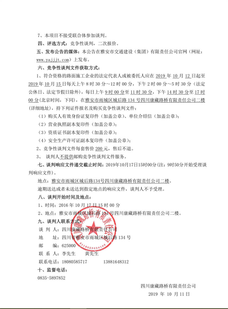 雅安市西入口整治與形象提升改造項(xiàng)目路面材料采購競爭性談判公告