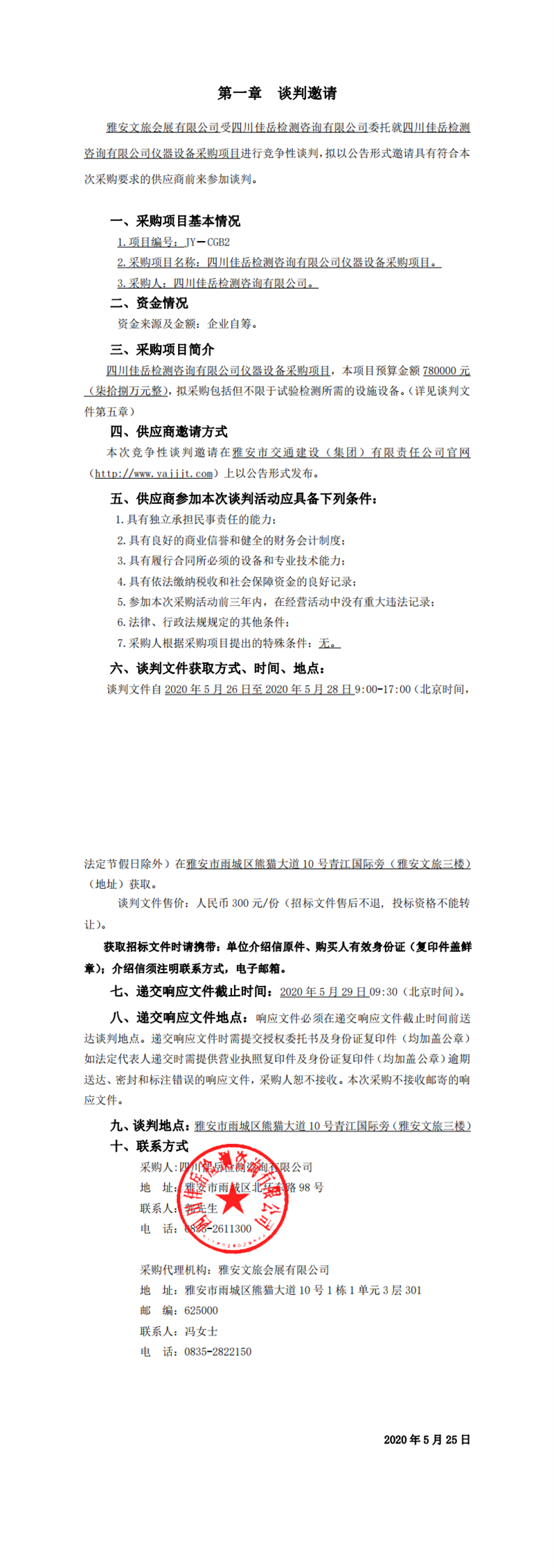 四川佳岳檢測咨詢有限公司儀器設備采購項目競爭性談判公告