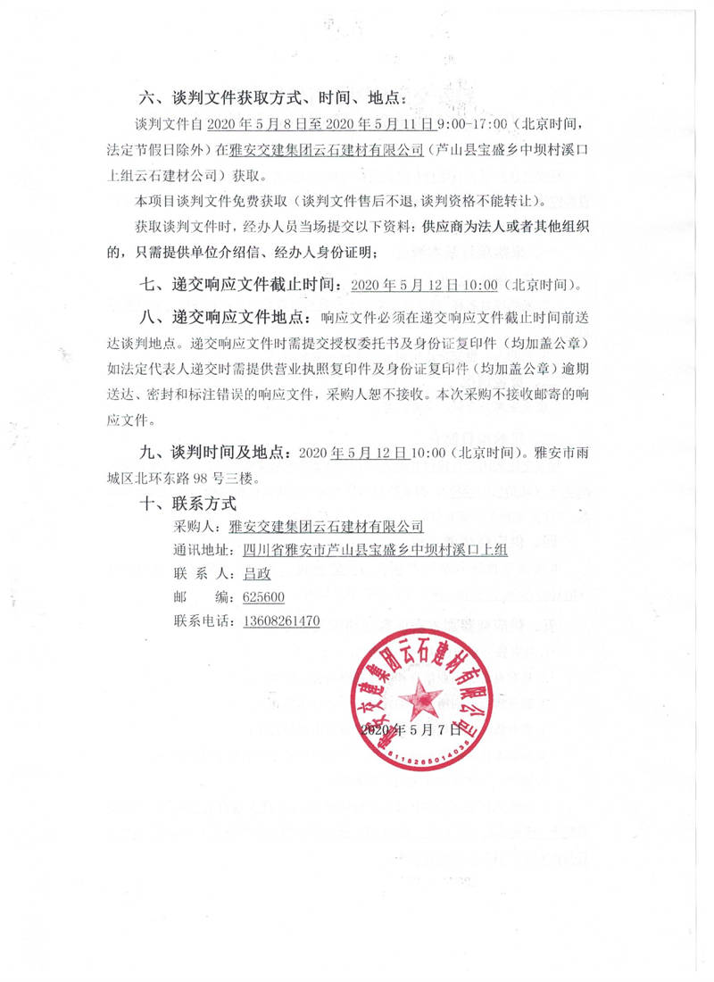 雅安交建集團(tuán)云石建材有限公司生產(chǎn)設(shè)備圓錐破采購項(xiàng)目競爭性談判(第二次)公告