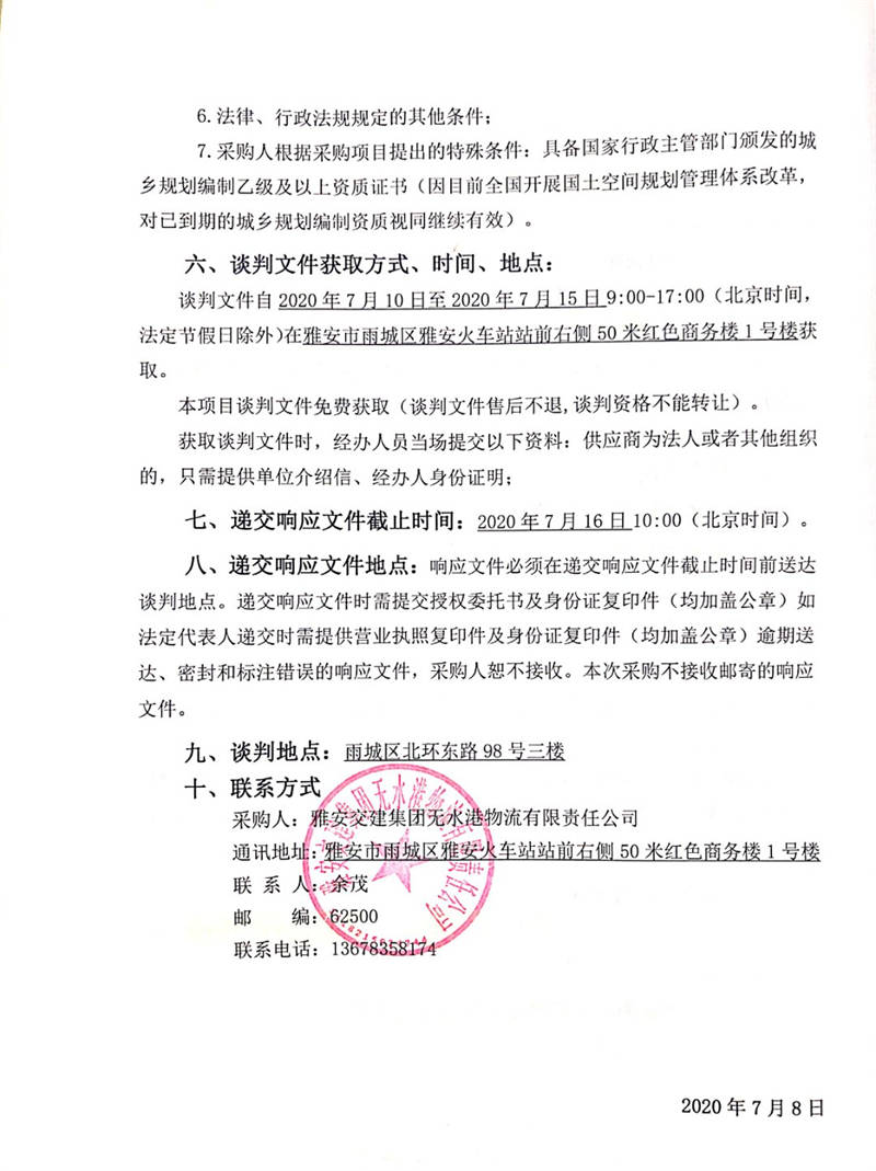 雅安交建集團(tuán)無水港物流有限責(zé)任公司雅安市鳳鳴綜合物流園項(xiàng)目概念規(guī)劃咨詢服務(wù)競(jìng)爭(zhēng)性談判公告