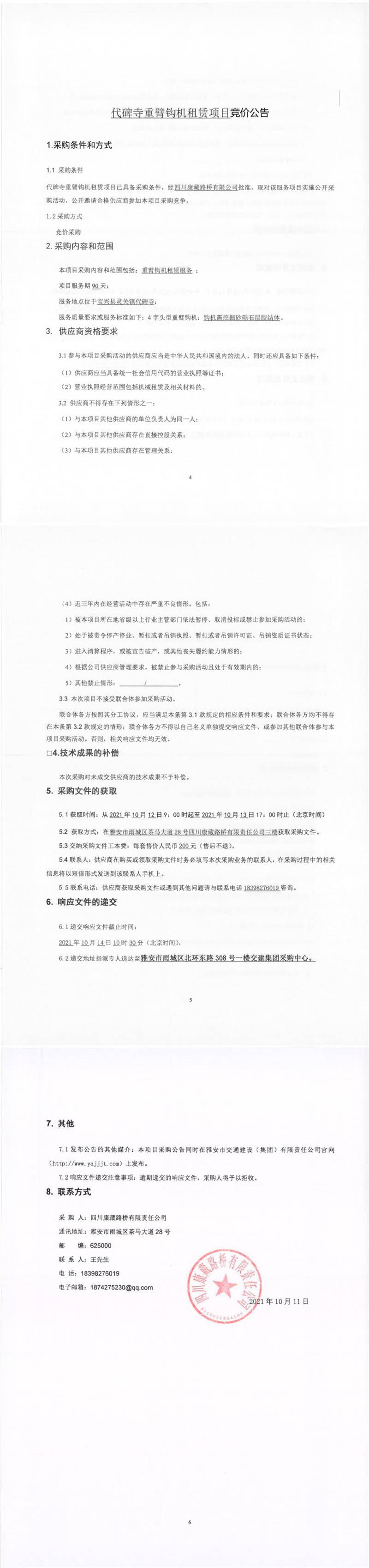 四川康藏路橋有限責(zé)任公司代碑寺重臂鉤機(jī)租賃項(xiàng)目競價公告