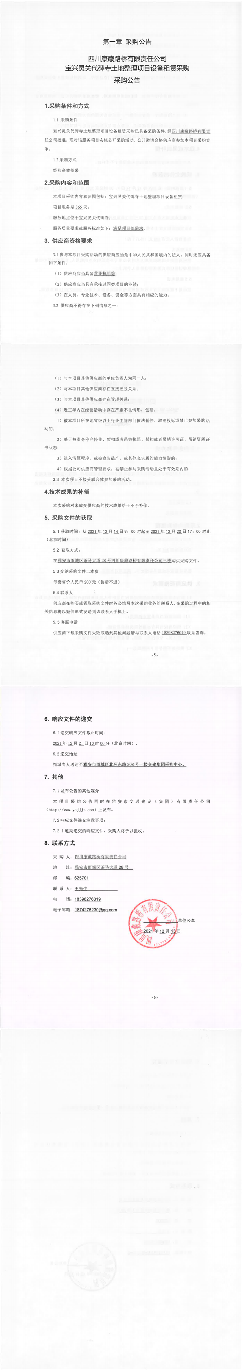 四川康藏路橋有限責(zé)任公司寶興靈關(guān)代碑寺土地整理項目設(shè)備租賃采購采購公告