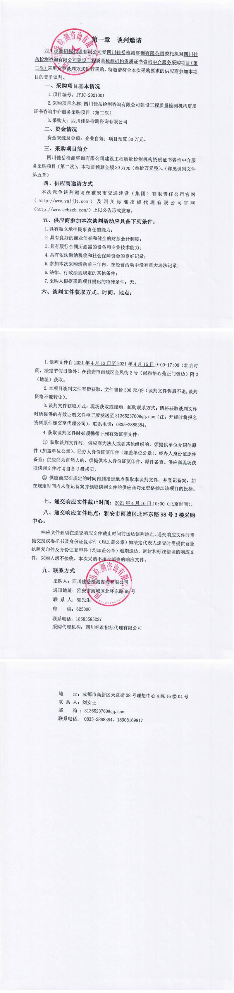 四川佳岳檢測(cè)咨詢(xún)有限公司建設(shè)工程質(zhì)量檢測(cè)機(jī)構(gòu)資質(zhì)證書(shū)咨詢(xún)中介服務(wù)采購(gòu)項(xiàng)目(第二次)競(jìng)爭(zhēng)談判公告