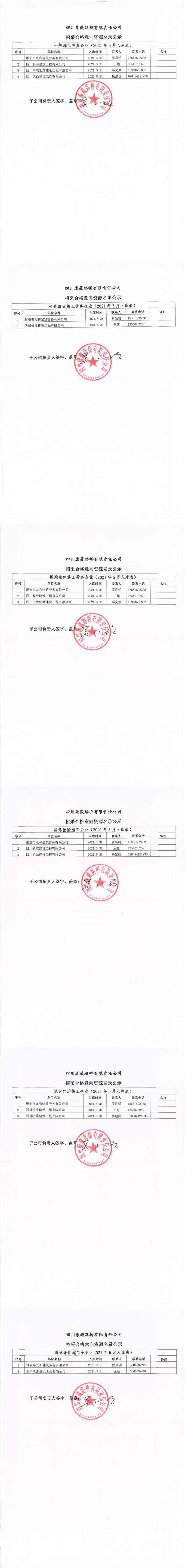 四川康藏路橋有限責(zé)任公司招采合格意向資源名錄公示