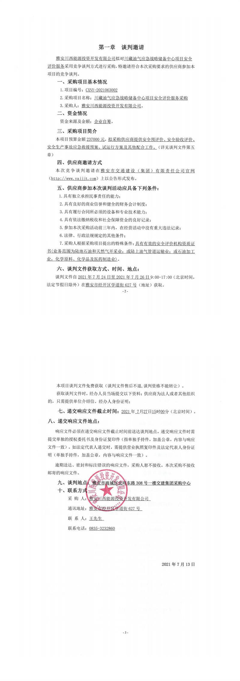 雅安川西能源投資開發(fā)有限公司川藏油氣應(yīng)急戰(zhàn)略儲(chǔ)備中心項(xiàng)目安全評(píng)價(jià)服務(wù)采購競爭談判公告
