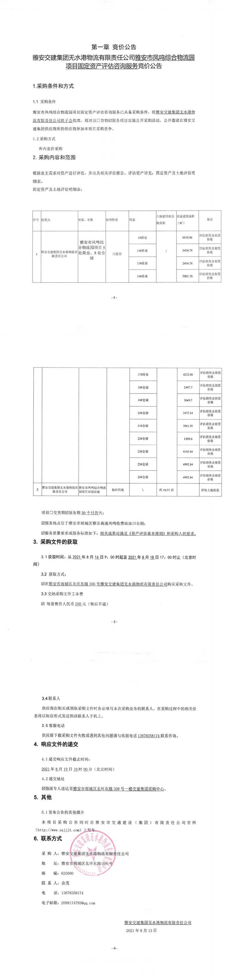 雅安交建集團無水港物流有限責任公司雅安市鳳鳴綜合物流園項目固定資產(chǎn)評估咨詢服務競價公告