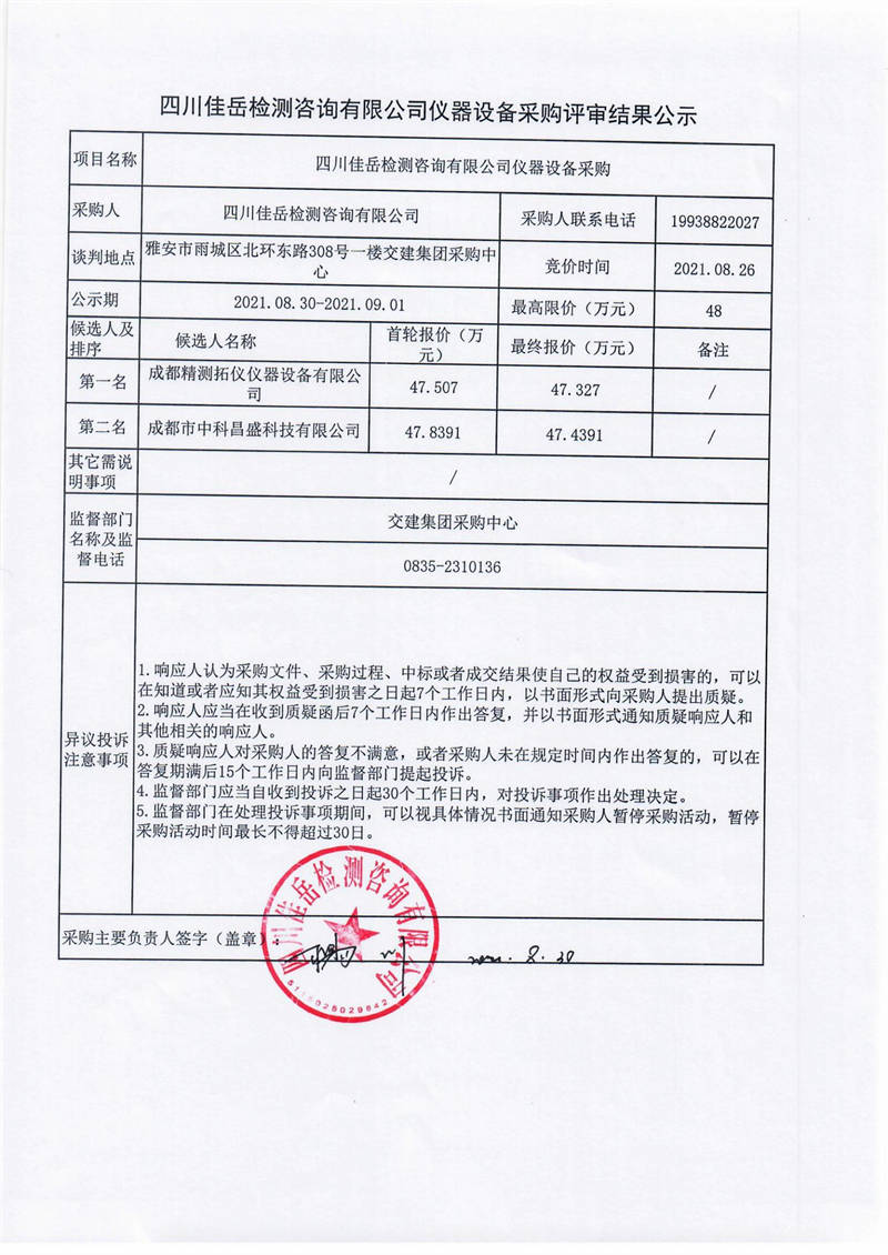 四川佳岳檢測咨詢有限公司儀器設(shè)備采購評審結(jié)果公示