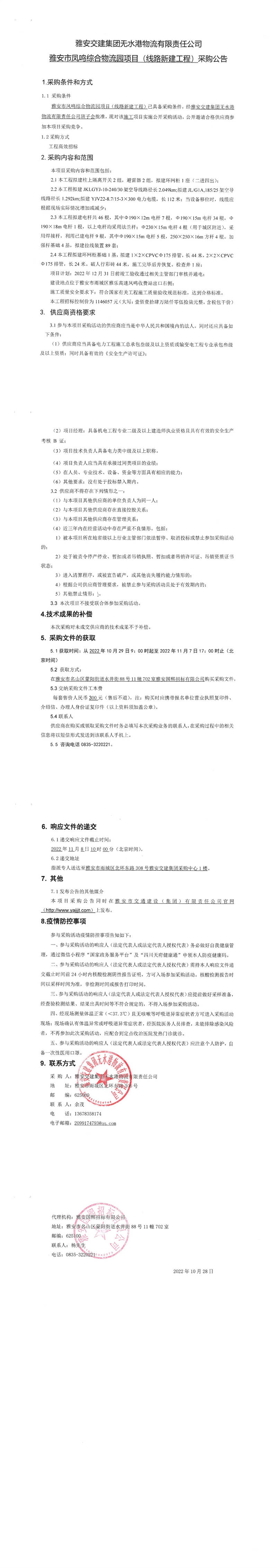雅安交建集團(tuán)無水港物流有限責(zé)任公司雅安市鳳鳴綜合物流園項(xiàng)目(線路新建工程)采購(gòu)公告