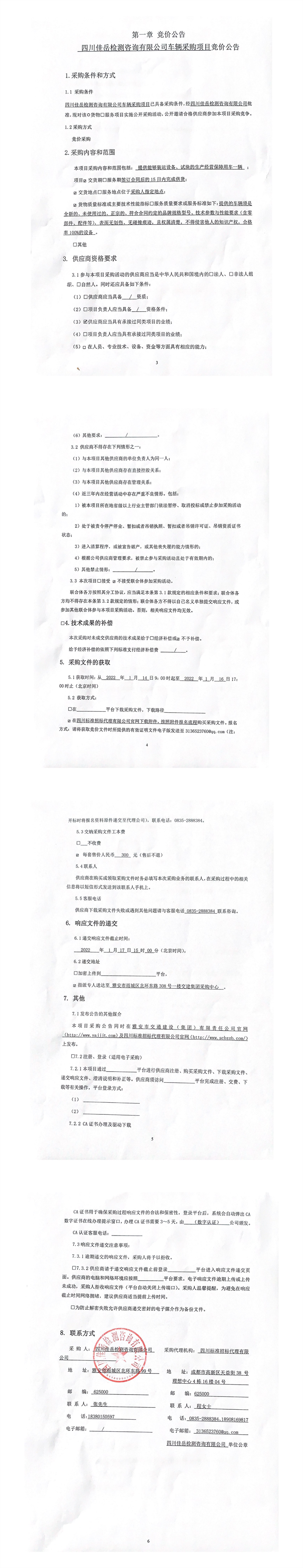 四川佳岳檢測(cè)咨詢有限公司車輛采購項(xiàng)目競(jìng)價(jià)公告