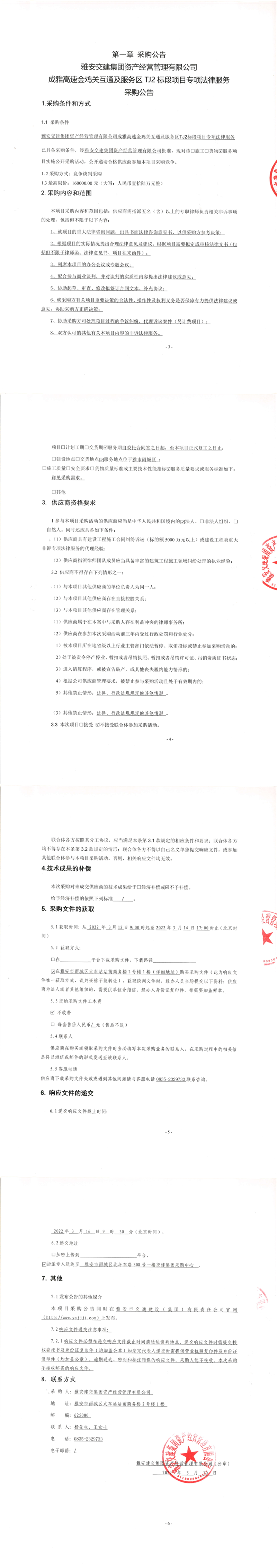 雅安交建集團(tuán)資產(chǎn)經(jīng)營管理有限公司成雅高速金雞關(guān)互通及服務(wù)區(qū)TJ2標(biāo)段項(xiàng)目專項(xiàng)法律服務(wù)采購公告