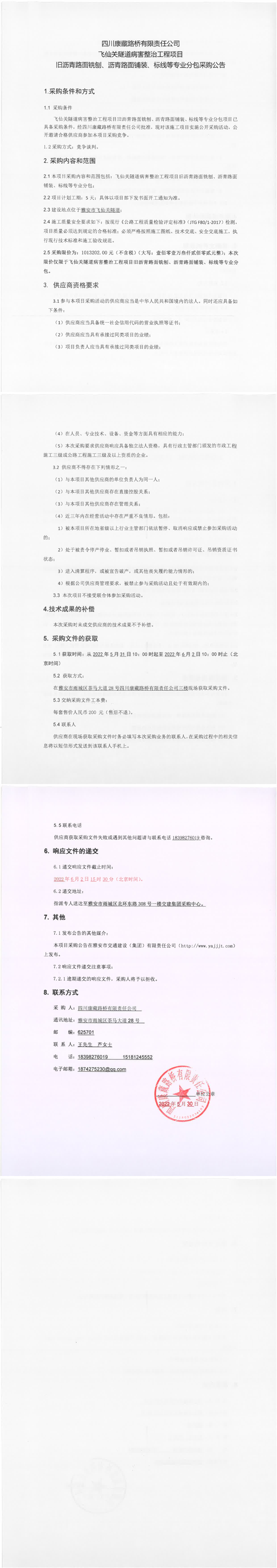 四川康藏路橋有限責(zé)任公司飛仙關(guān)隧道病害整治工程項(xiàng)目舊瀝青路面銑刨、瀝青路面鋪裝、標(biāo)線等專業(yè)分包采購公告