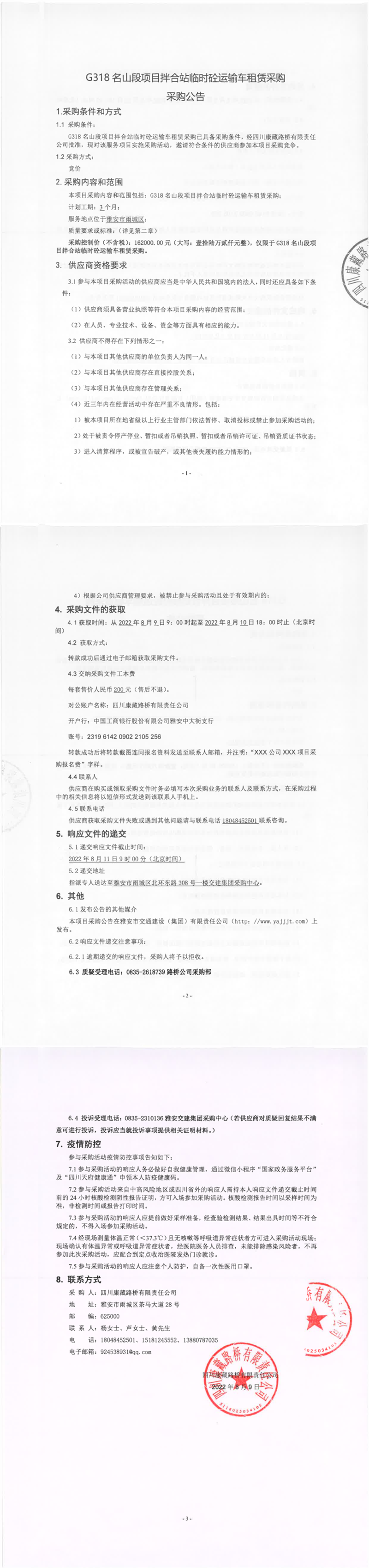 四川康藏路橋有限責(zé)任公司G318名山段項(xiàng)目拌合站臨時(shí)砼運(yùn)輸車租賃采購(gòu)采購(gòu)公告