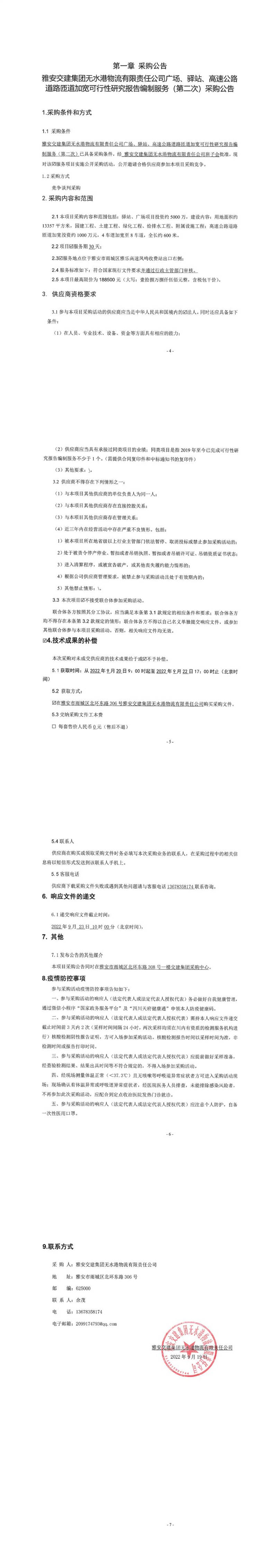雅安交建集團(tuán)無水港物流有限責(zé)任公司廣場(chǎng)、驛站、高速公路道路匝道加寬可行性研究報(bào)告編制服務(wù)(第二次)采購(gòu)公告
