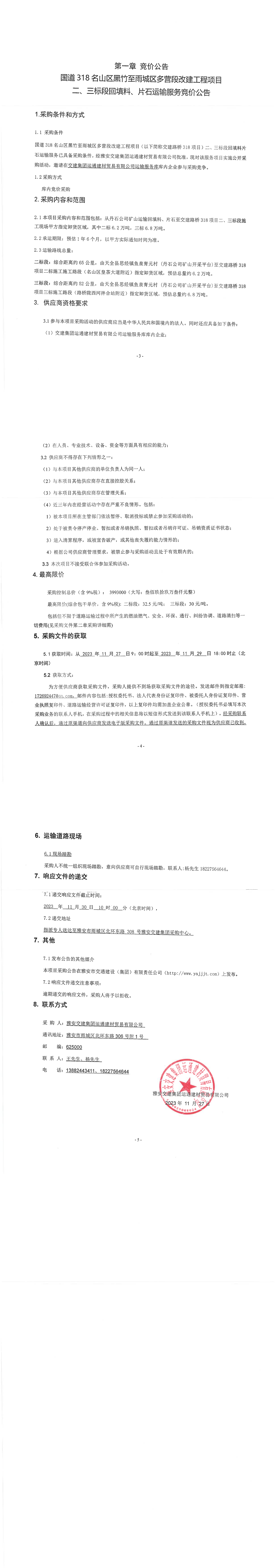 交建集團(tuán)運(yùn)通建材貿(mào)易有限公司國道318名山區(qū)黑竹至雨城區(qū)多營段改建工程項(xiàng)目二、三標(biāo)段回填料、片石運(yùn)輸服務(wù)競價(jià)公告
