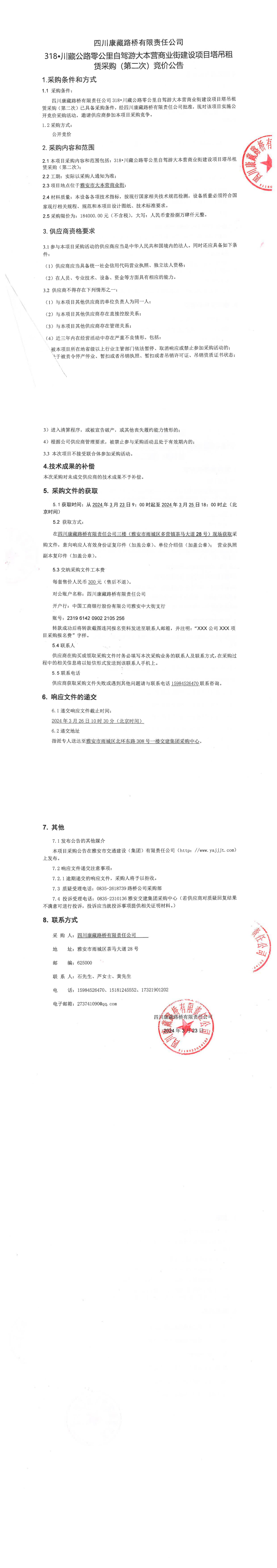 四川康藏路橋有限責(zé)任公司318•川藏公路零公里自駕游大本營商業(yè)街建設(shè)項(xiàng)目塔吊租賃采購(第二次)競(jìng)價(jià)公告