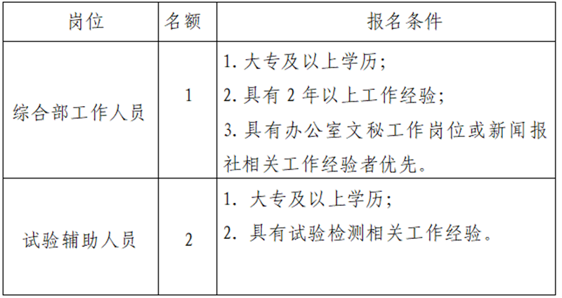 雅安交建集團工程檢測有限公司是雅安市交通建設(shè)(集團)有限責(zé)任公司下屬子公司。主要從事主要從事公路、橋梁及隧道等的檢測等業(yè)務(wù),F(xiàn)根據(jù)公司業(yè)務(wù)發(fā)展需要,擬招聘3名工作人員,現(xiàn)將有關(guān)事項公告如下: