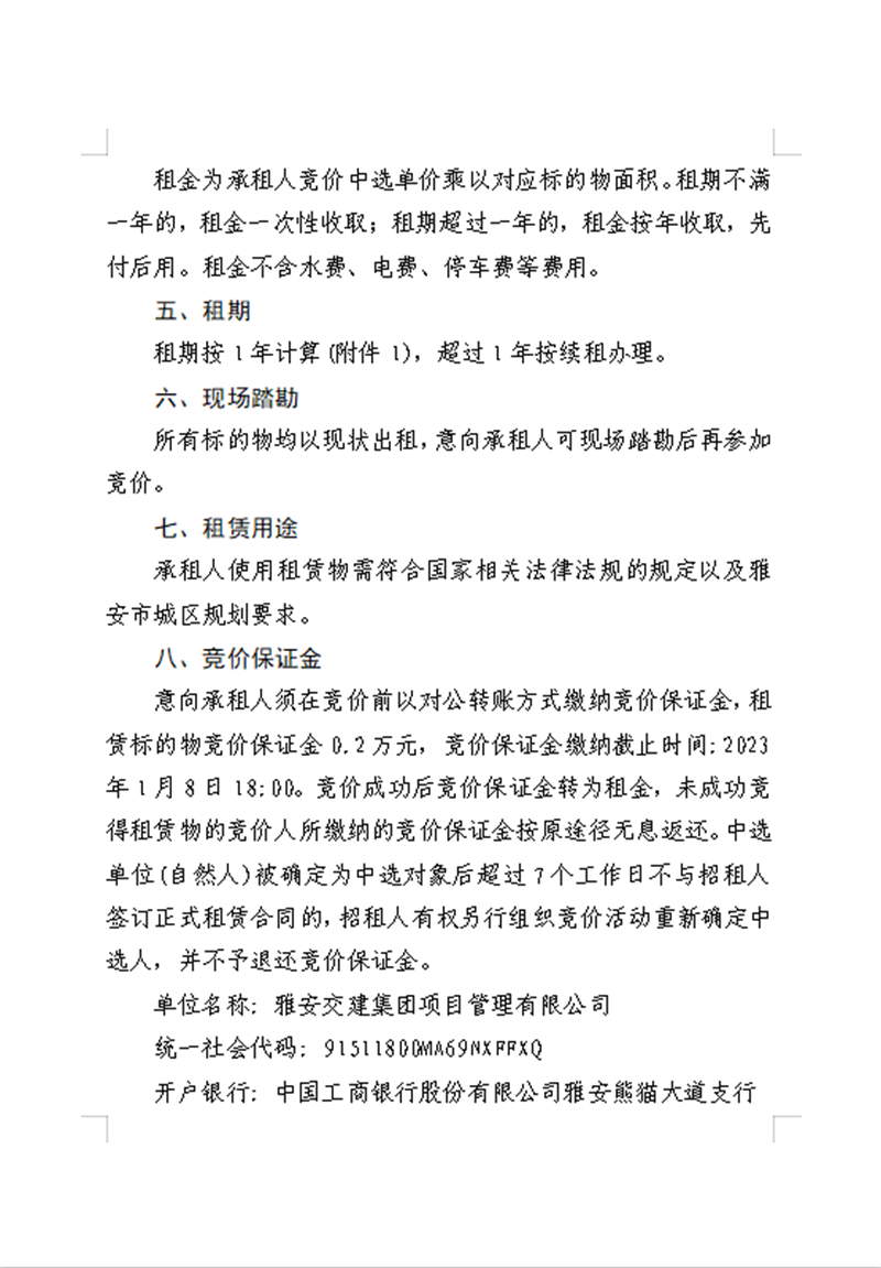 雅安交建集團(tuán)項(xiàng)目管理有限公司 關(guān)于南郊鄉(xiāng)柳陽村可利用地塊公開招租的公告資料