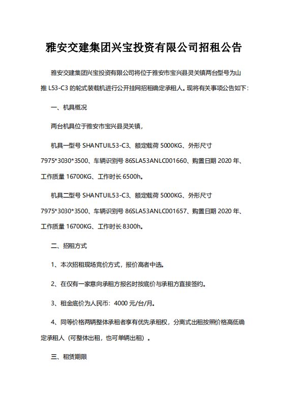 雅安市城市綜合停車場姚橋綜合停車場及配套用房招租公告