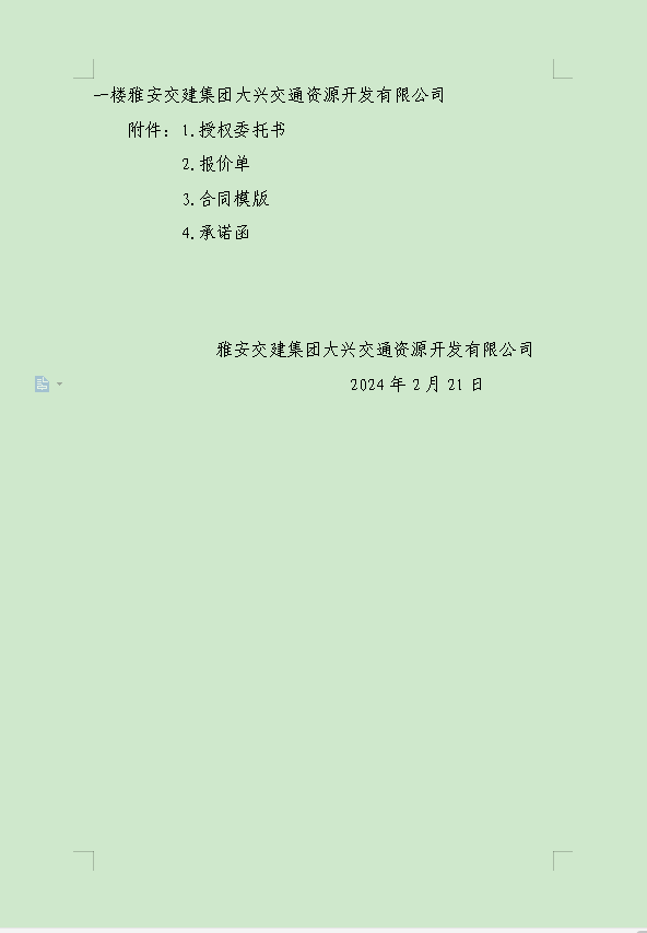 雅安交建集團(tuán)大興交通資源開發(fā)有限公司關(guān)于雨城區(qū)姚橋片區(qū)15-09地塊2024年競(jìng)價(jià)招租的公告附件