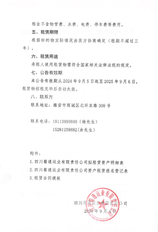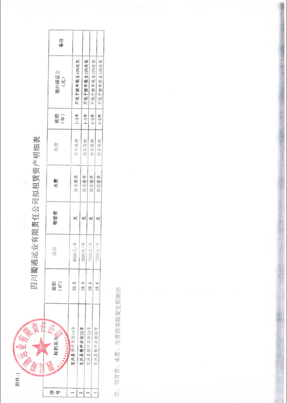 四川蜀通運業(yè)有限責任公司關于調(diào)整蜀通公司4間門面價格二次掛網(wǎng)的公告附件