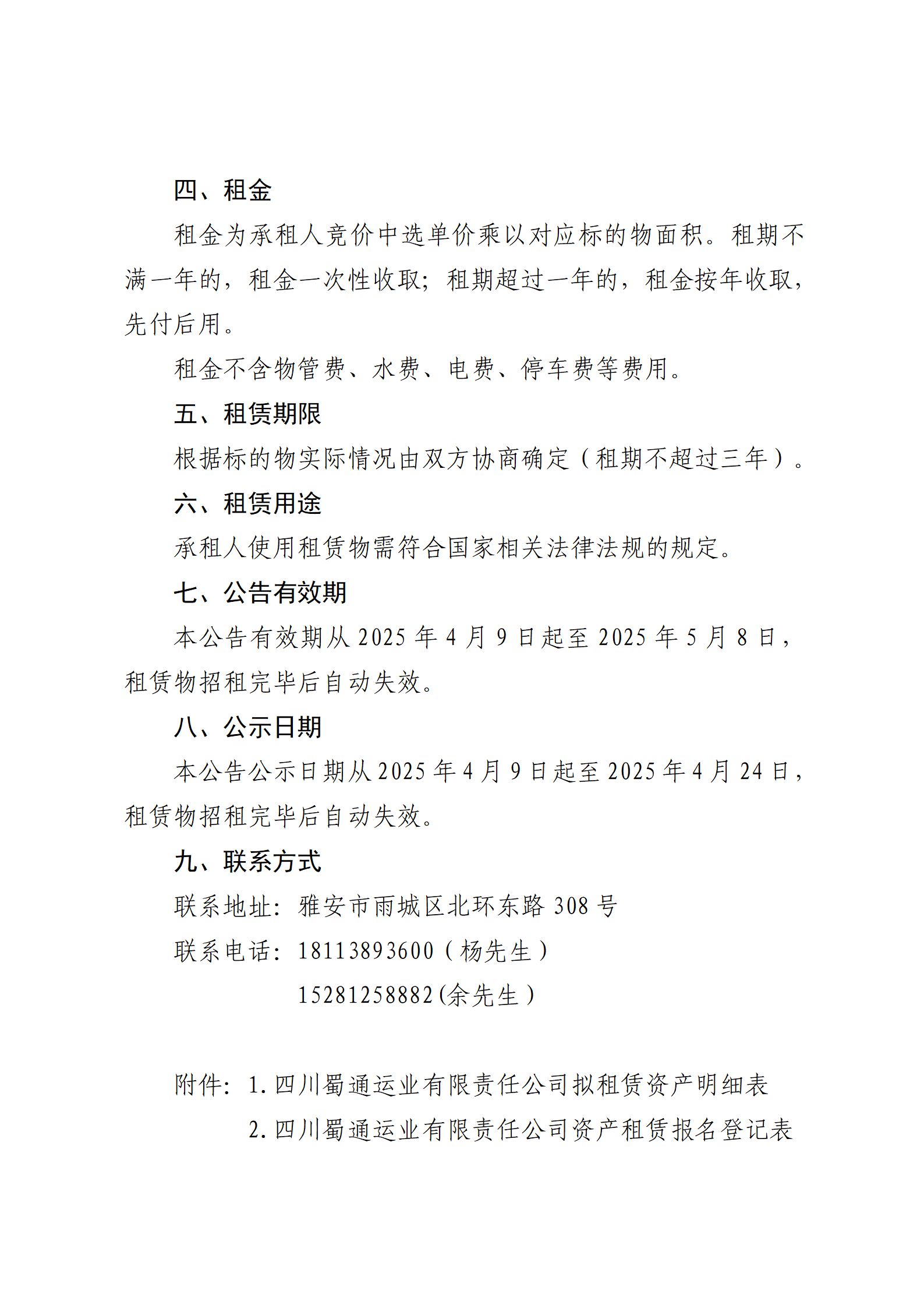 四川蜀通運業(yè)有限責任公司 關(guān)于康藏路261號附22號、平安路30號兩處門面、漢源汽車站二樓閑置房屋進行掛網(wǎng)招租的公告