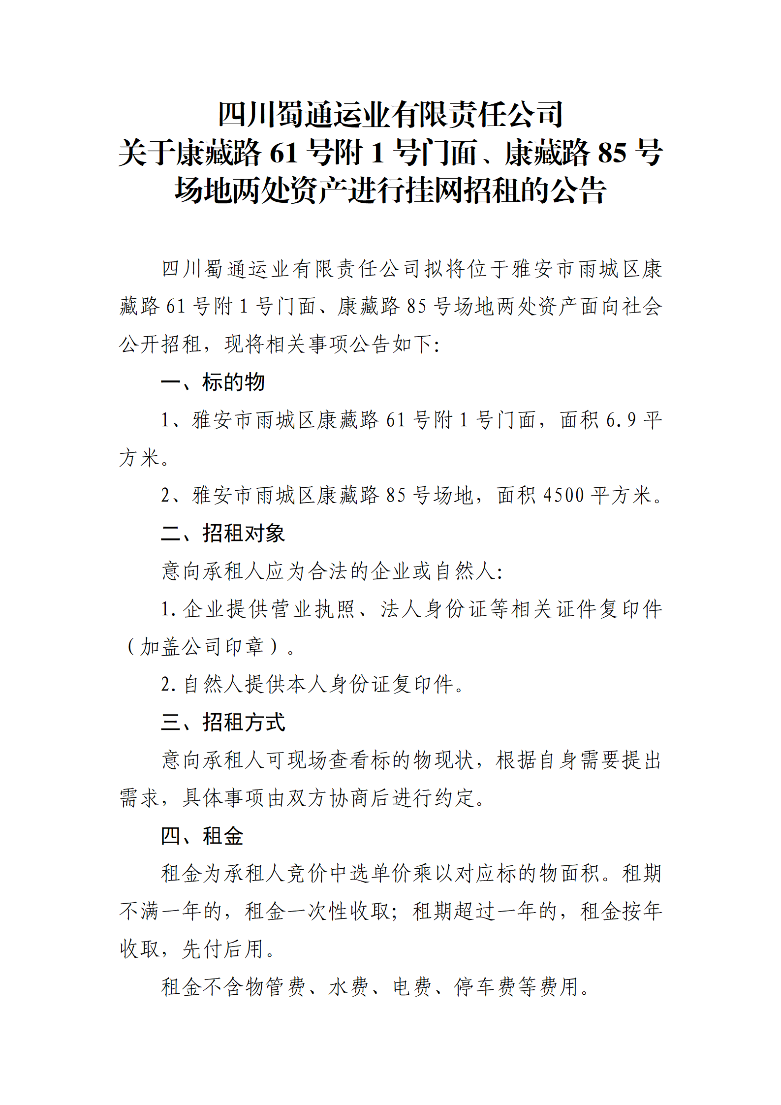 ËÄ´¨Êñͨß\(y¨´n)˜I(y¨¨)ÓÐÏÞØŸ(z¨¦)Èι«Ë¾ êP(gu¨¡n)ÓÚ¿µ²ØÂ·61Ì–(h¨¤o)¸½1Ì–(h¨¤o)éT(m¨¦n)Ãæ¡¢¿µ²ØÂ·85Ì–(h¨¤o)ˆö(ch¨£ng)µØƒÉÌŽÙY®a(ch¨£n)ßM(j¨¬n)ÐÐ’ì¾W(w¨£ng)ÕÐ×âµÄ¹«¸æ