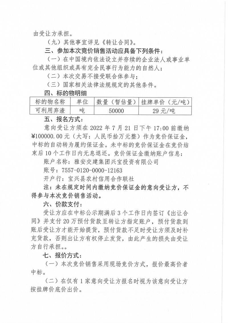 寶興縣靈關鎮(zhèn)代碑寺土地整理項目一批可利用棄渣競價銷售公告7.15(5萬噸)
