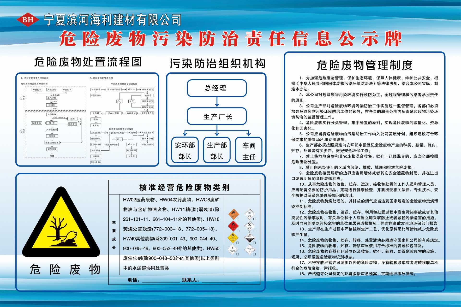 關(guān)于寧夏濱河海利建材有限公司危險廢物污染防治信息的公示